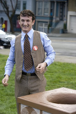 Van Sant's aesthetic is constricted by the fixed nature of biography. After Milk has brought us up to 1973, the year Milk decides to run for a seat on the San Francisco Board of Supervisors, one feels that Van Sant loses interest in the story. There's no room for invention—not with his actors, or even his cinematographer. He must stick to the facts, or to those facts that make Milk Milk—that is, a subject worthy of a biopic. Early on in the film, when Van Sant inserts ghostly documentary images of people in and around the Castro in the 1970s into the montage, one has the sense that the director is making a subtle point about the film's manufactured past in relation to the "real" past of the Castro.As we watch Milk run for a seat on the Board of Supervisors (between 1973 and 1976, he ran and lost three times, twice for the Board of Supervisors and once for the California State Assembly), Penn becomes less of an ensemble player, and by all appearances begins to direct himself. It's as if, denied the opportunity to play with the images as much as he'd like, Van Sant has given up playing at all. Left to his own devices, Penn becomes too actory.