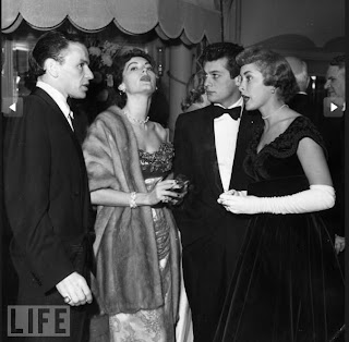 Tony Curtis, his wife Janet Leigh with Frank Sinatra and Ava Gardner at a charity party in Hollywood