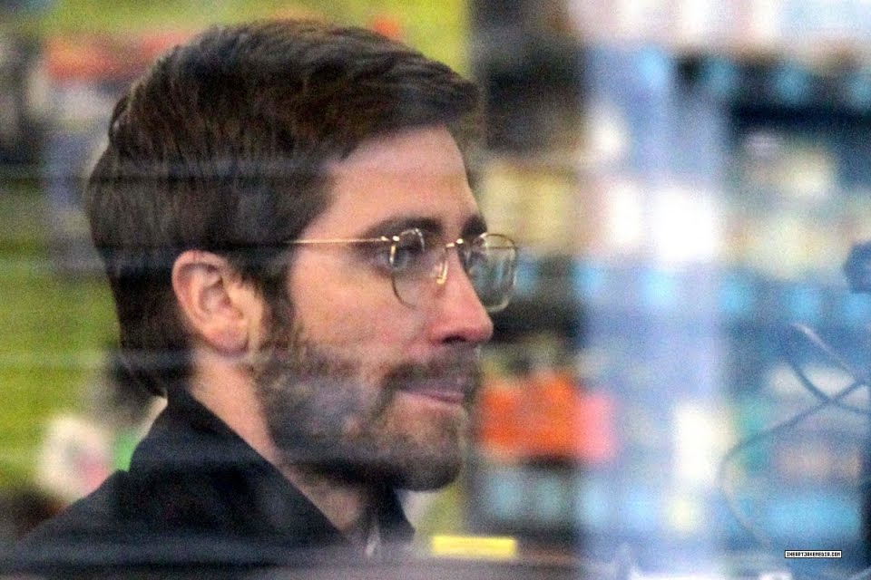 Jake Gyllenhaal puts on a pair of glasses while filming a cameo role on Saturday (February 4, 2012) at Ridley Road Market in Dalston, England.